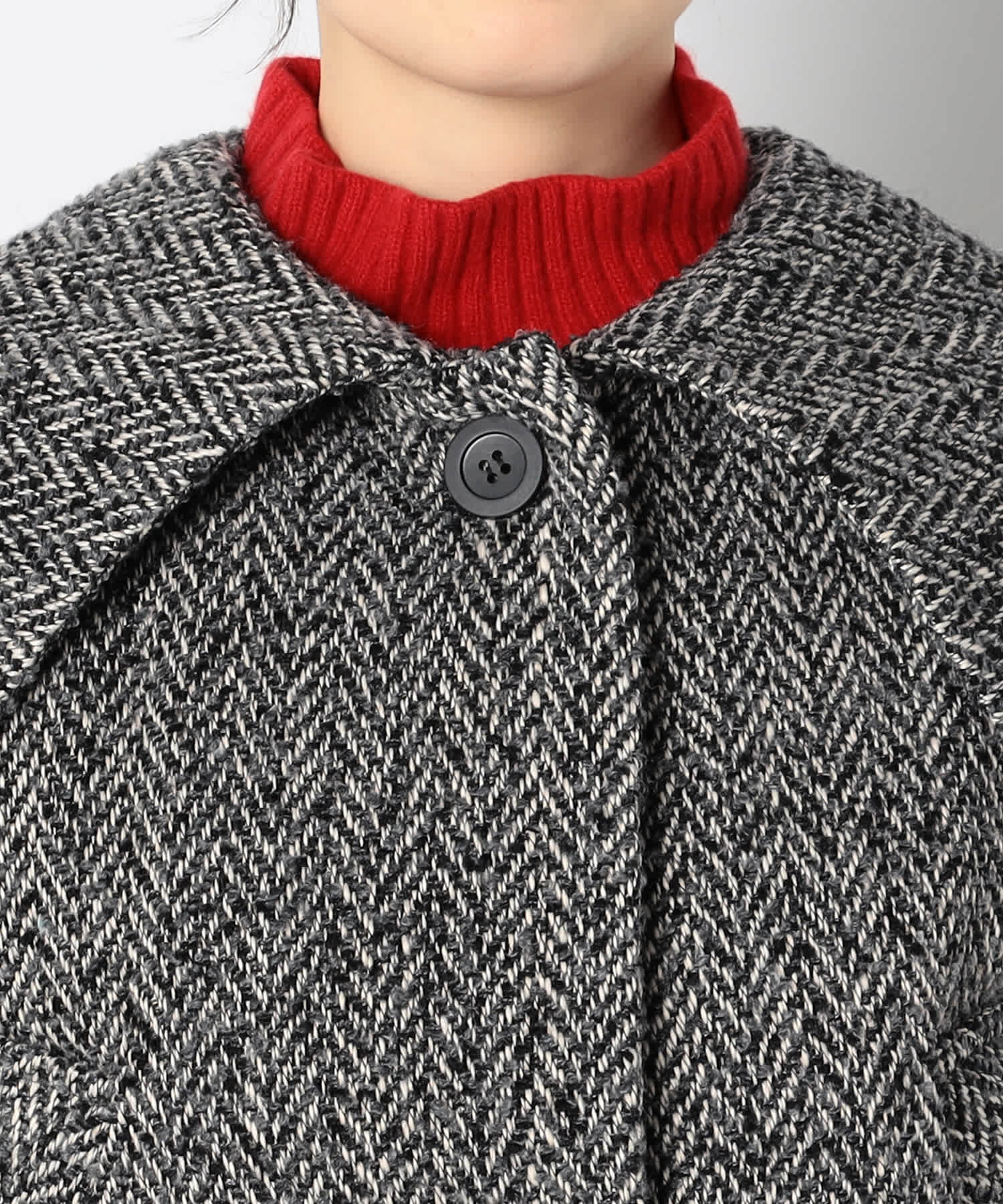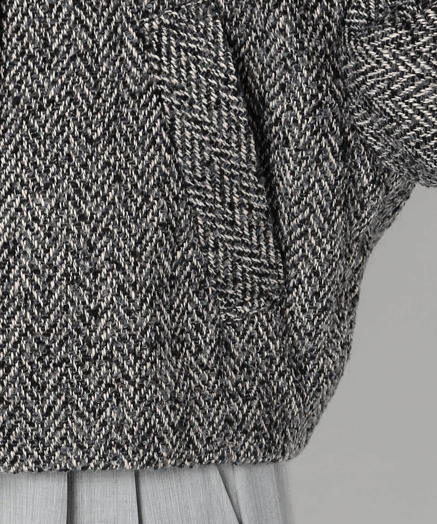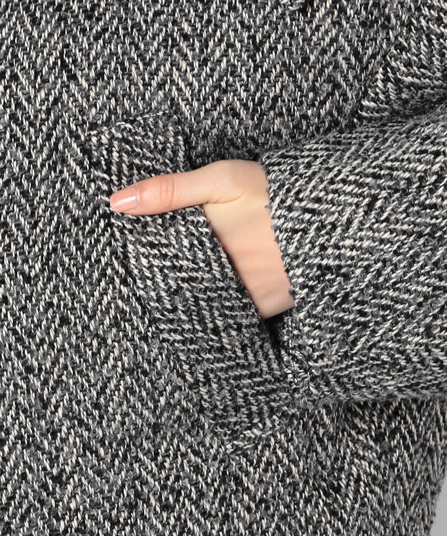 エレガントなヘリンボーン柄が特徴のアウターです。