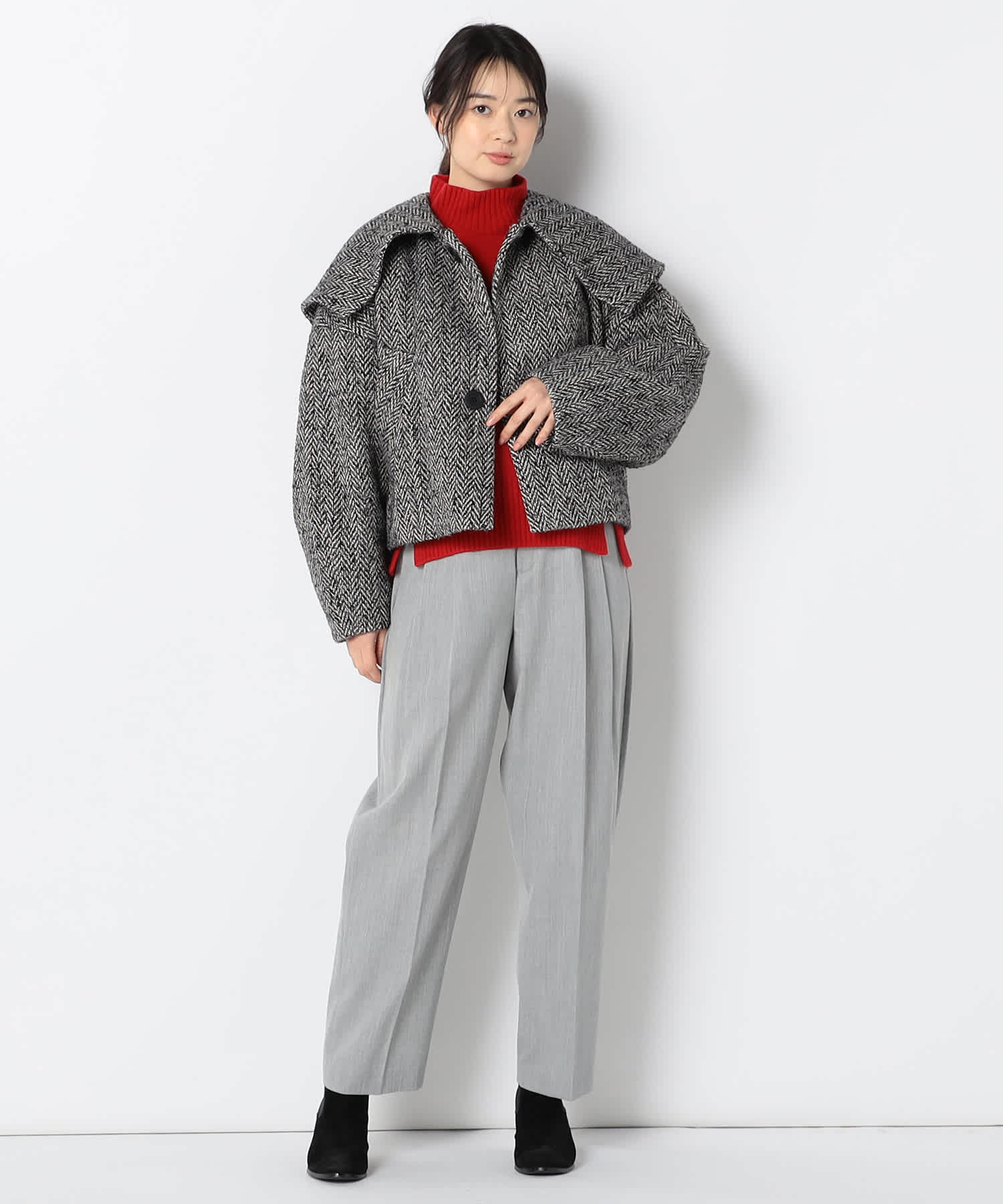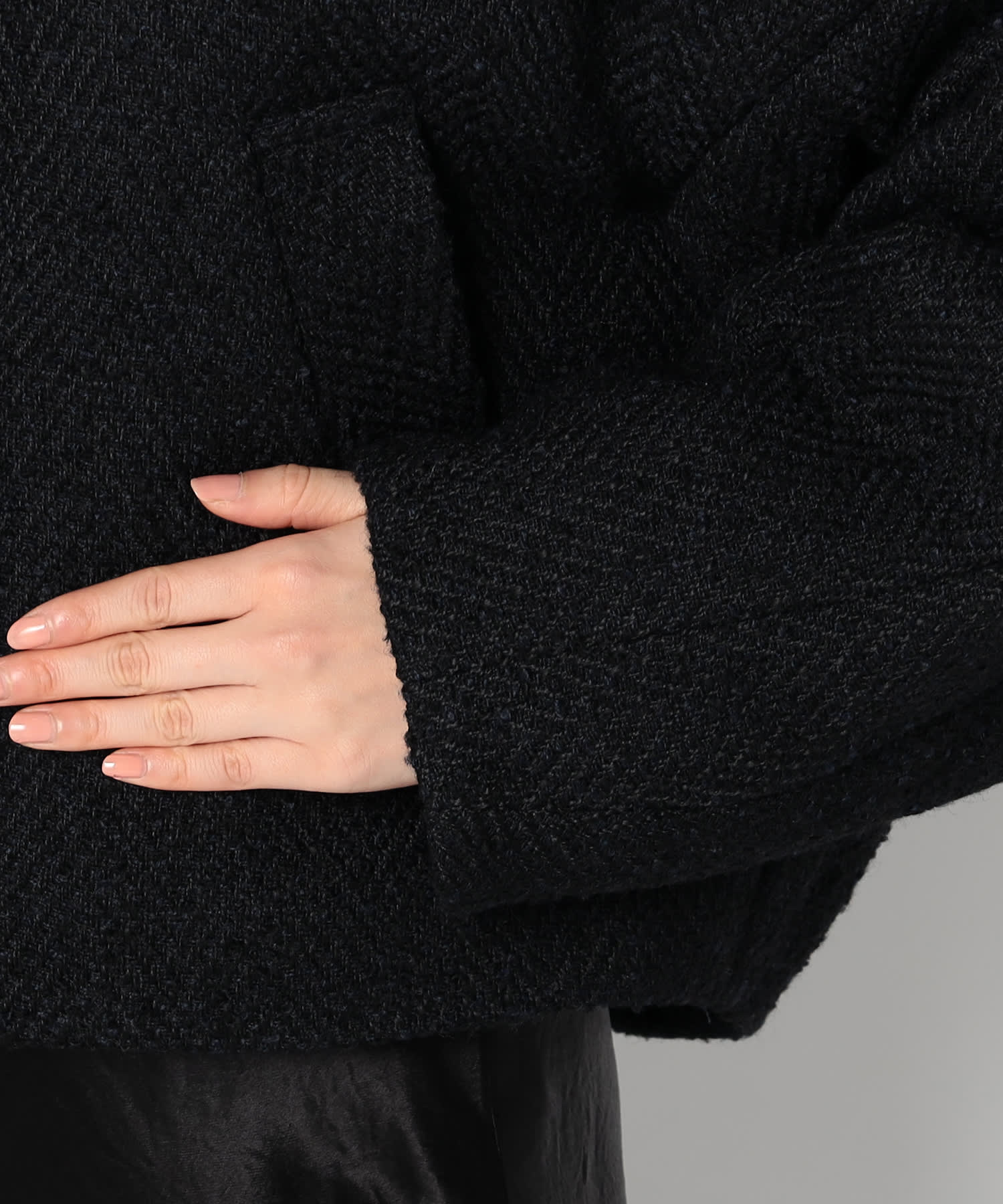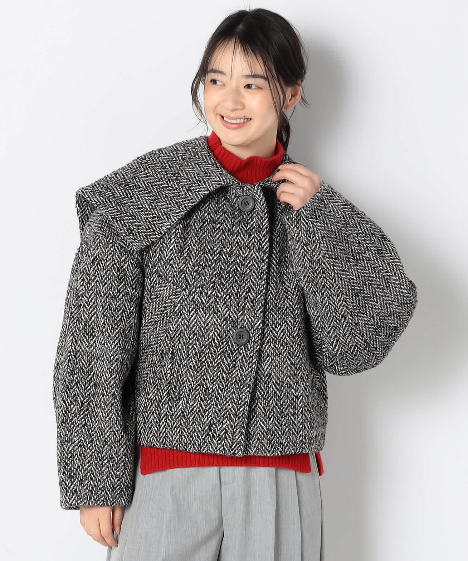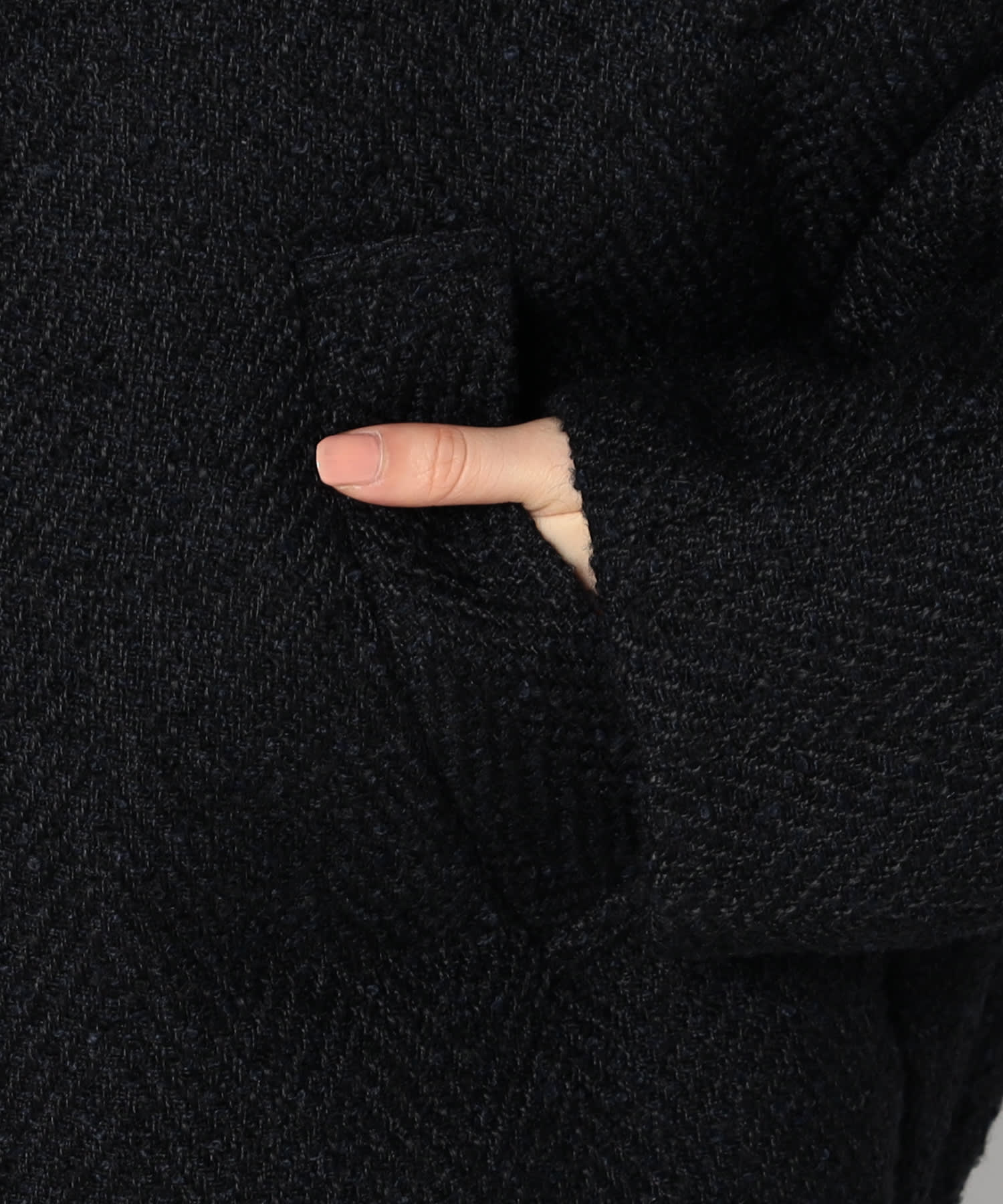 エレガントなヘリンボーン柄が特徴のアウターです。