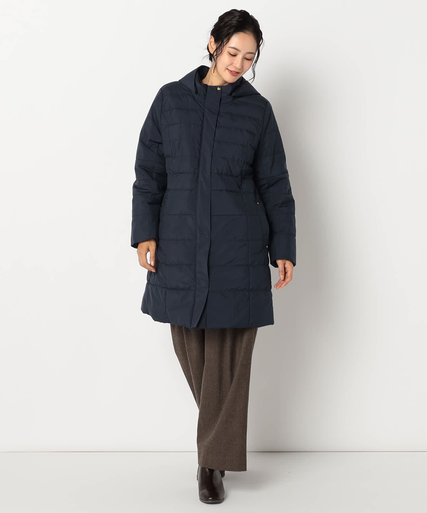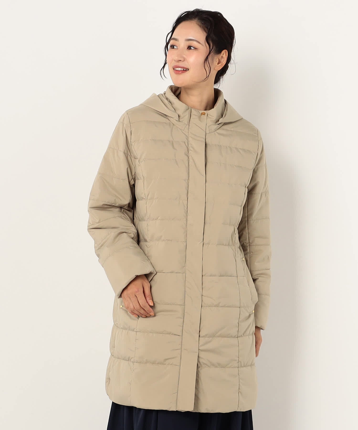 シンプルで洗練されたデザインの中綿コートです。