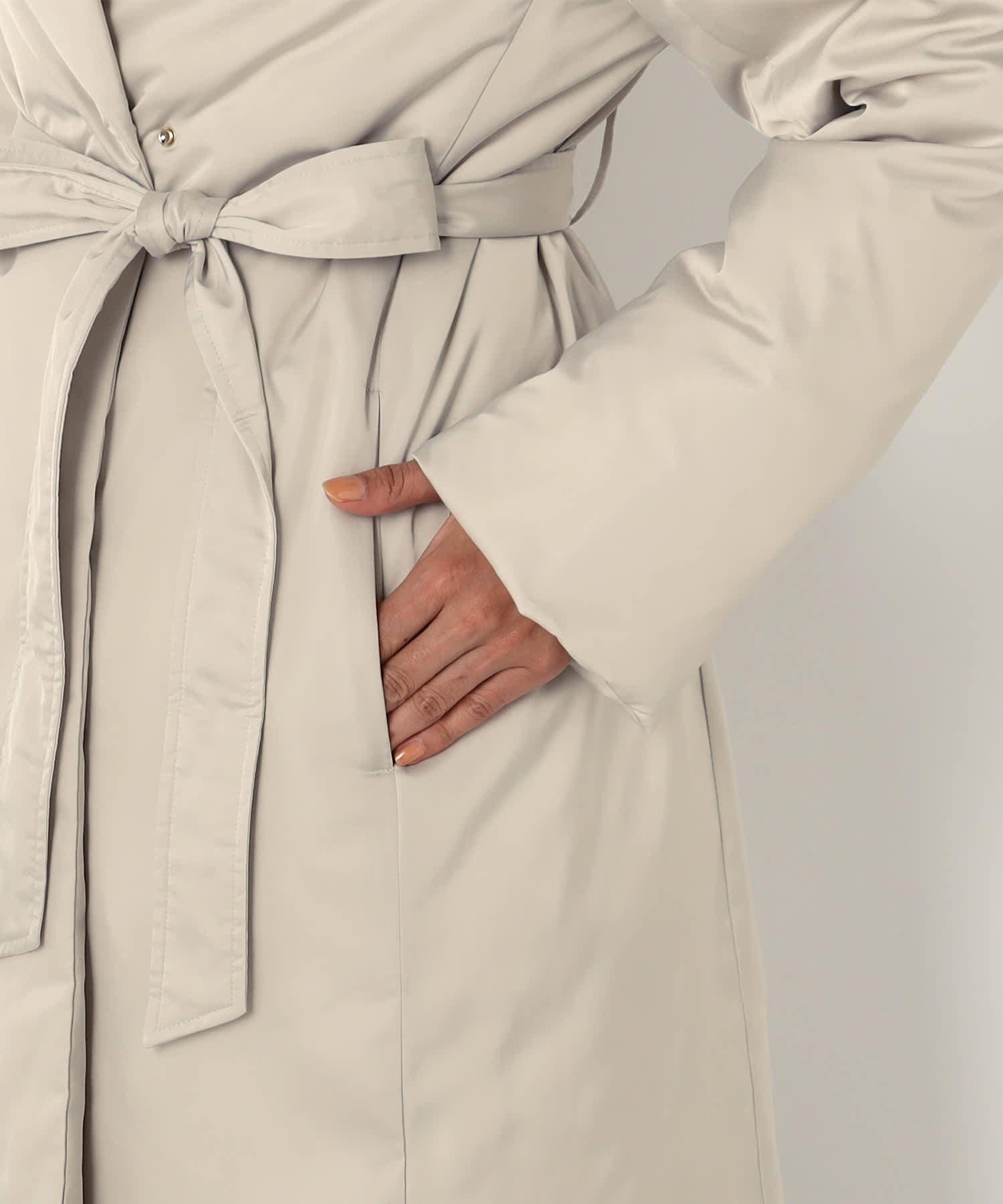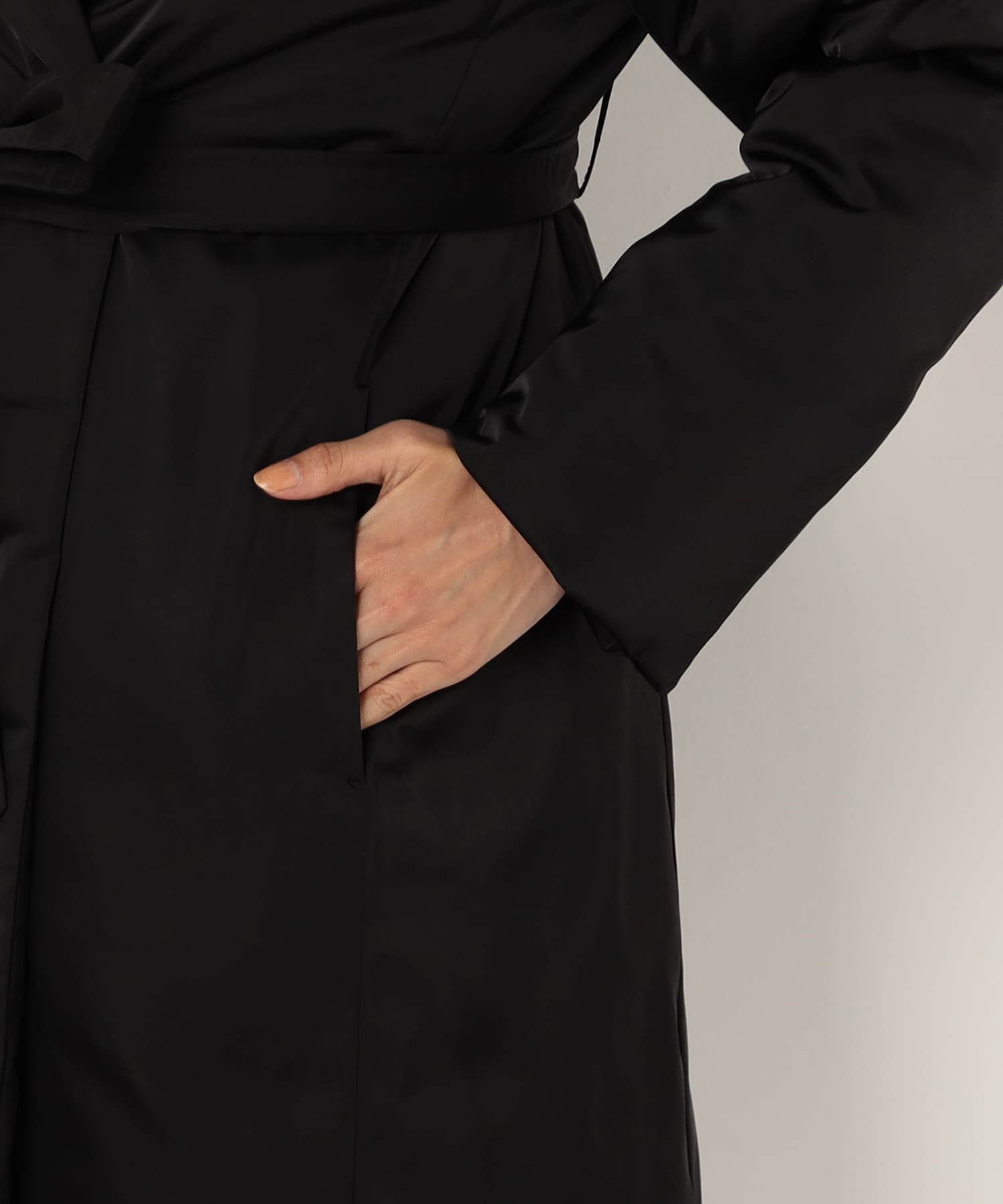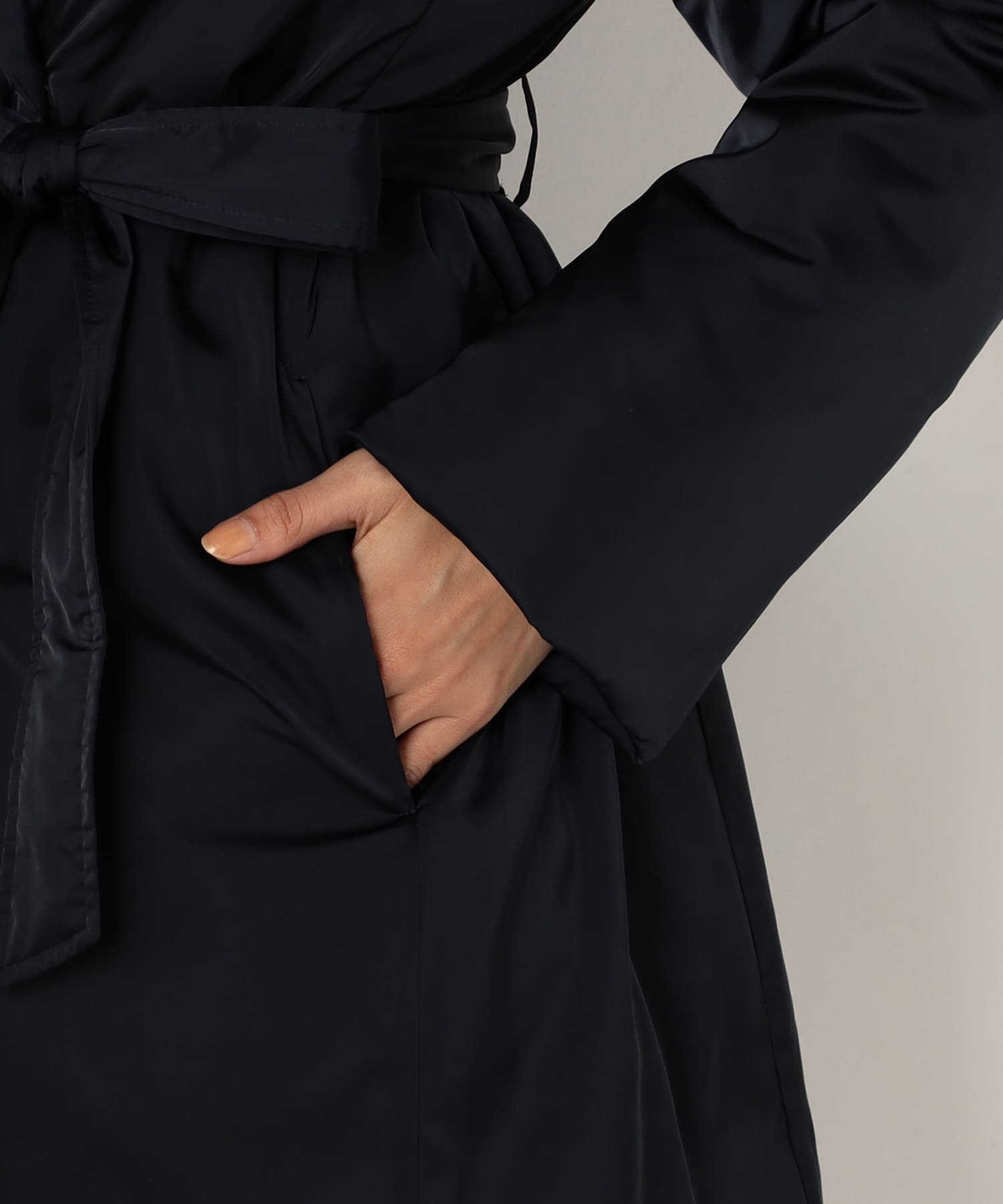 ウエストのベルトがアクセントとなり、スタイルアップ効果をもたらします。