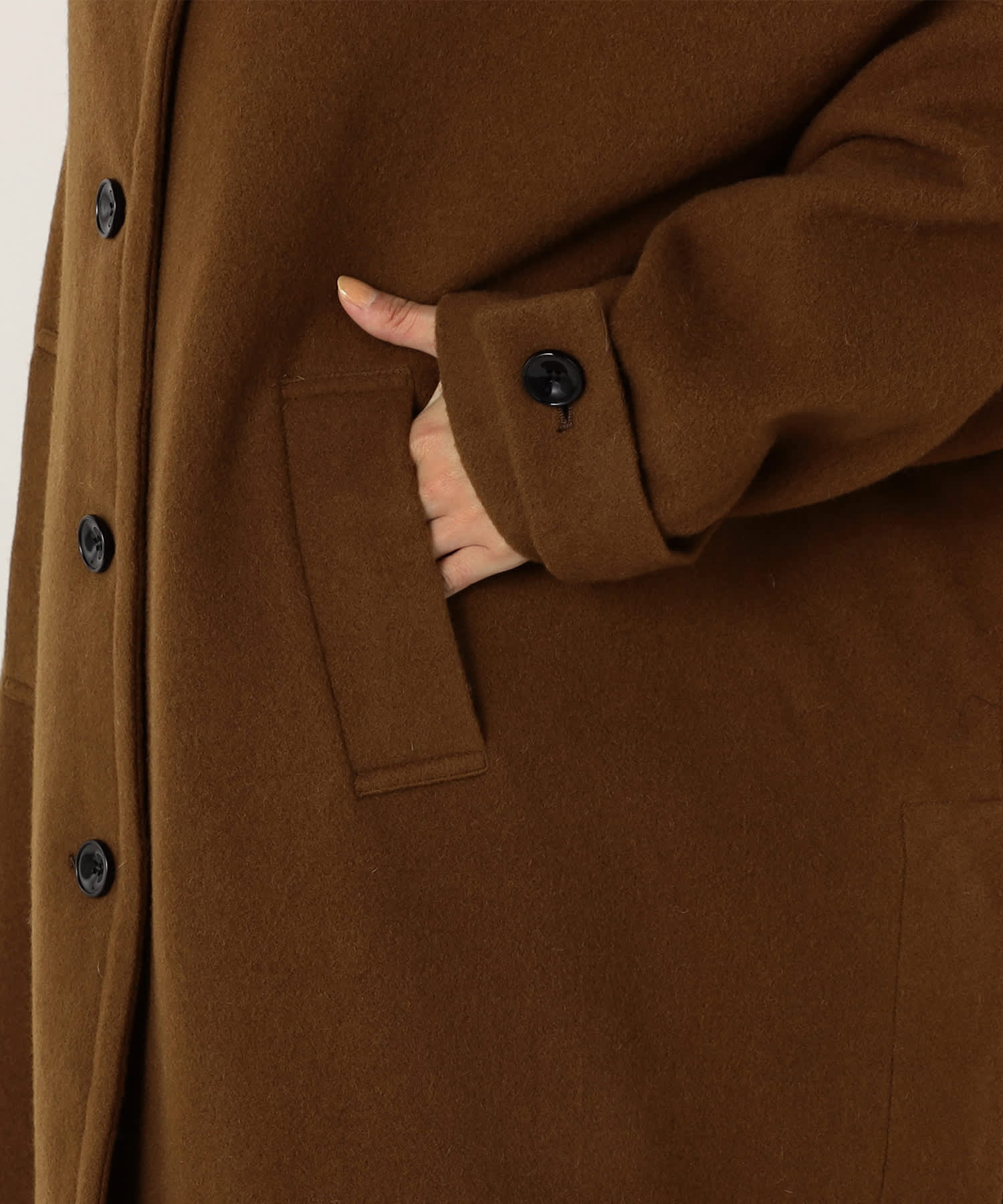 厚手の素材がしっかりとした防寒性を提供し、寒い日でも心地よく着用できるのが魅力です。