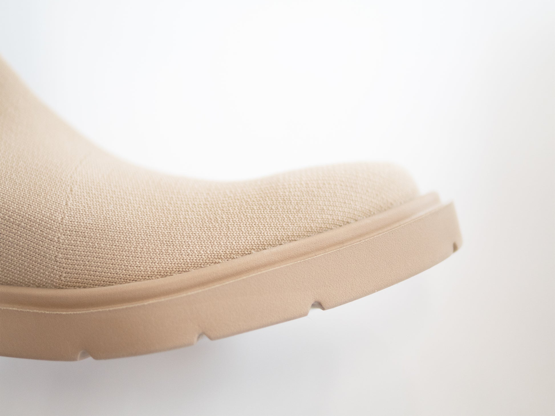 ニット素材を活かし、ボリュームある見た目からは想像つかないほどの軽さが最大のポイントで、なんと、24cmでわずか約260g(片足分)を実現!