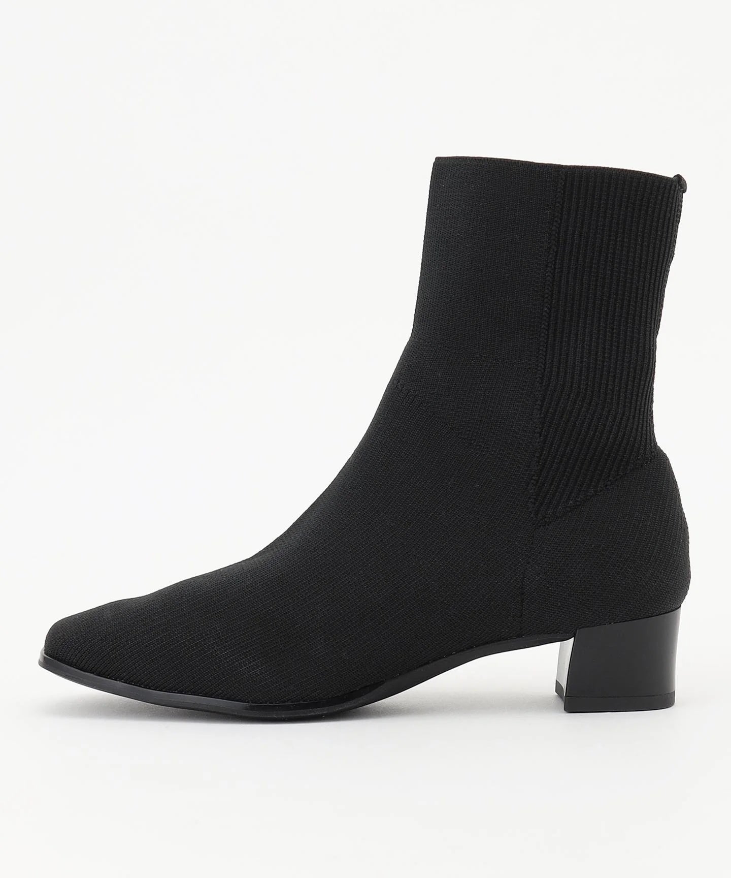 すっきりとしたスクエアトゥに3.5cmのチャンキーヒールを合わせた、オンオフ問わずデイリーに使えるショートブーツ。