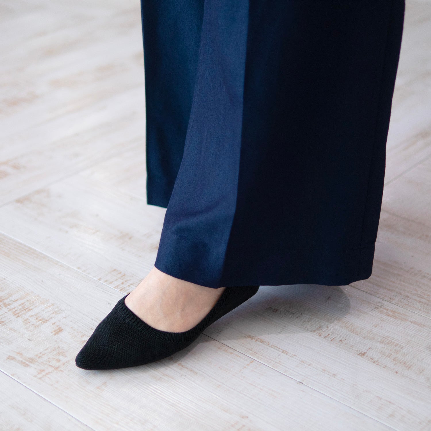 オリジナル開発のポインテッドトゥはつま先の締め付け感のない柔らかな履き心地にこだわり、履き口はリブ入りで踏み込み時にも足当たりを感じさせません。