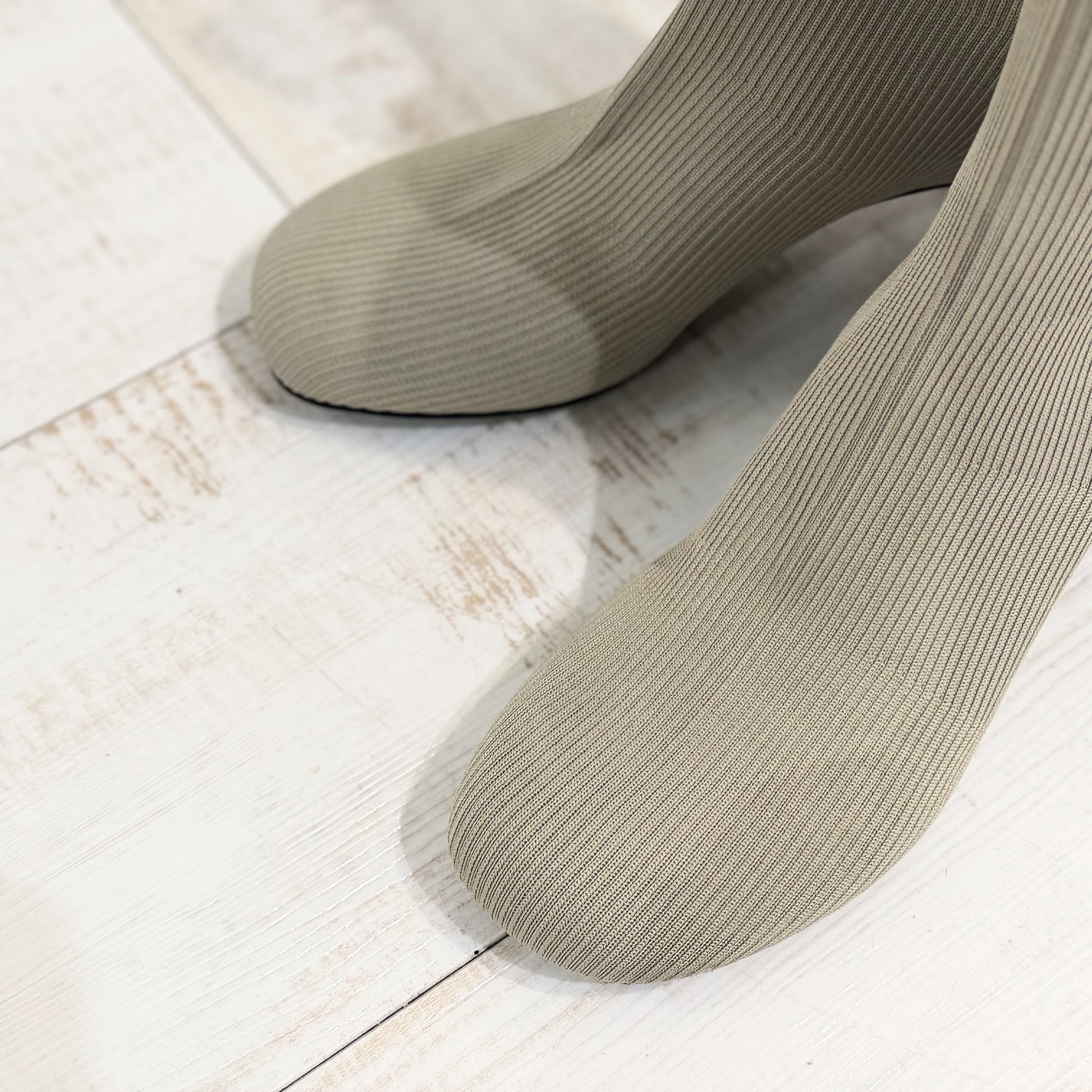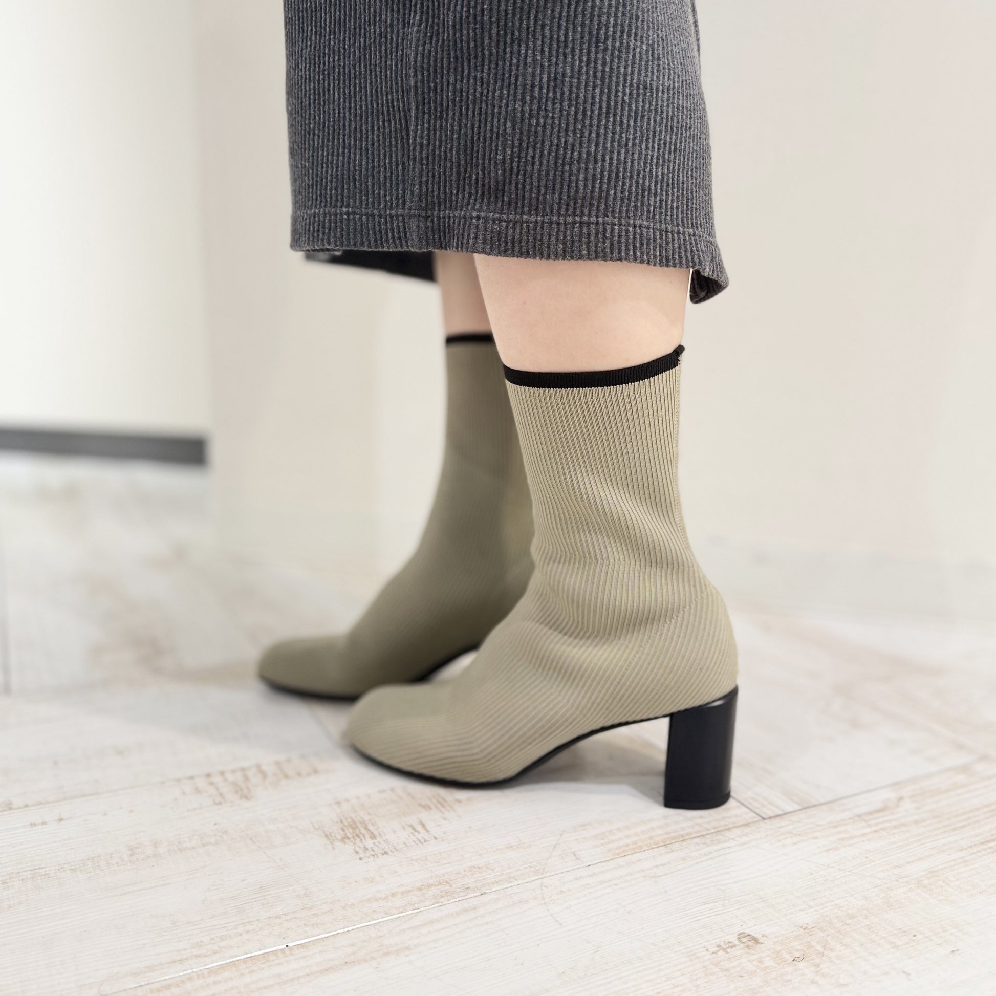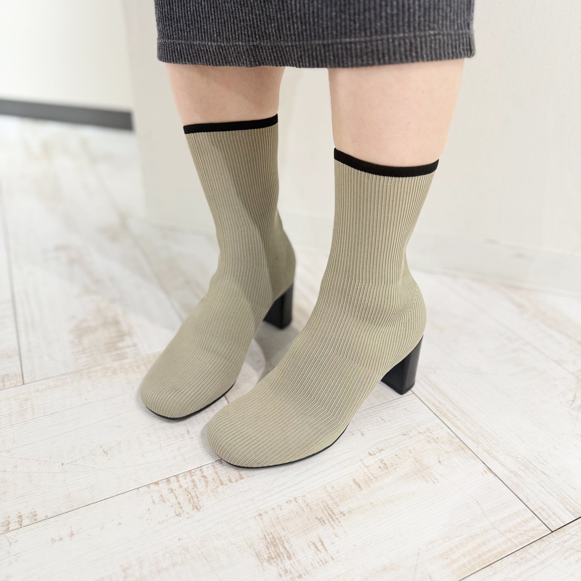 エレガントで洗練された印象の細いリブ編みのニットアッパーは足を綺麗に見せてくれ、また甲部分をしっかりホールドするのでヒールがあっても歩きやすくなっています。
