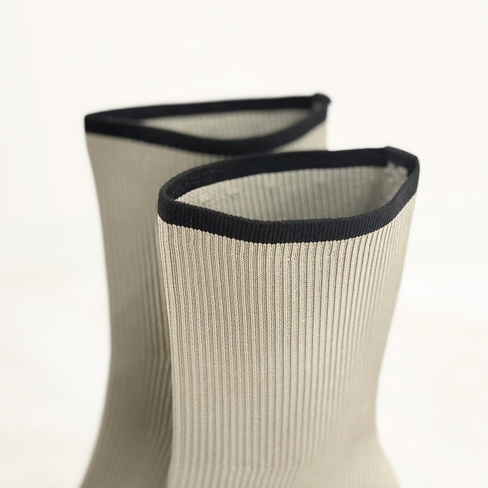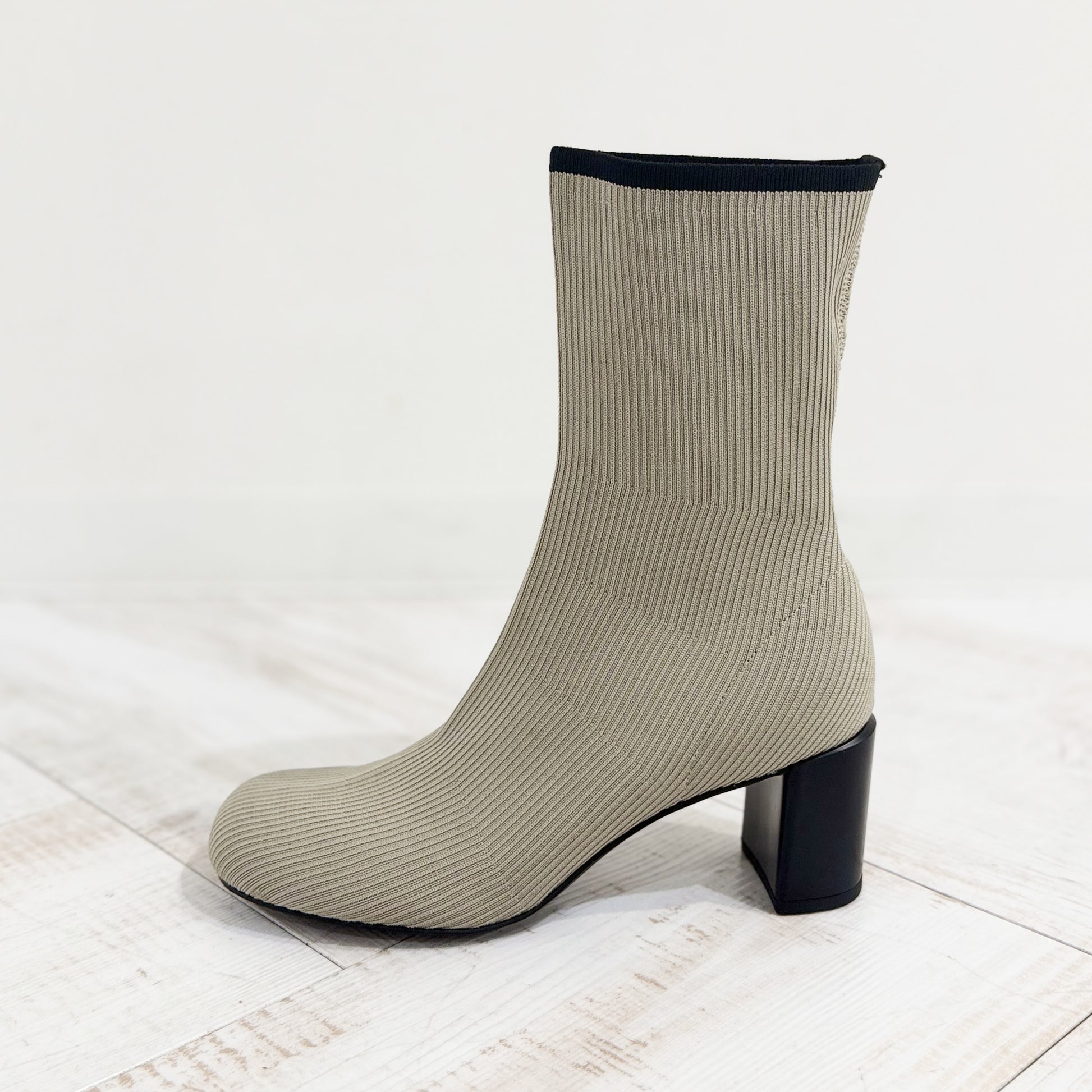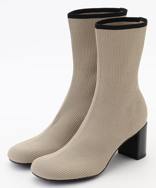 エレガントで洗練された印象の細いリブ編みのニットアッパーは足を綺麗に見せてくれ、また甲部分をしっかりホールドするのでヒールがあっても歩きやすくなっています。