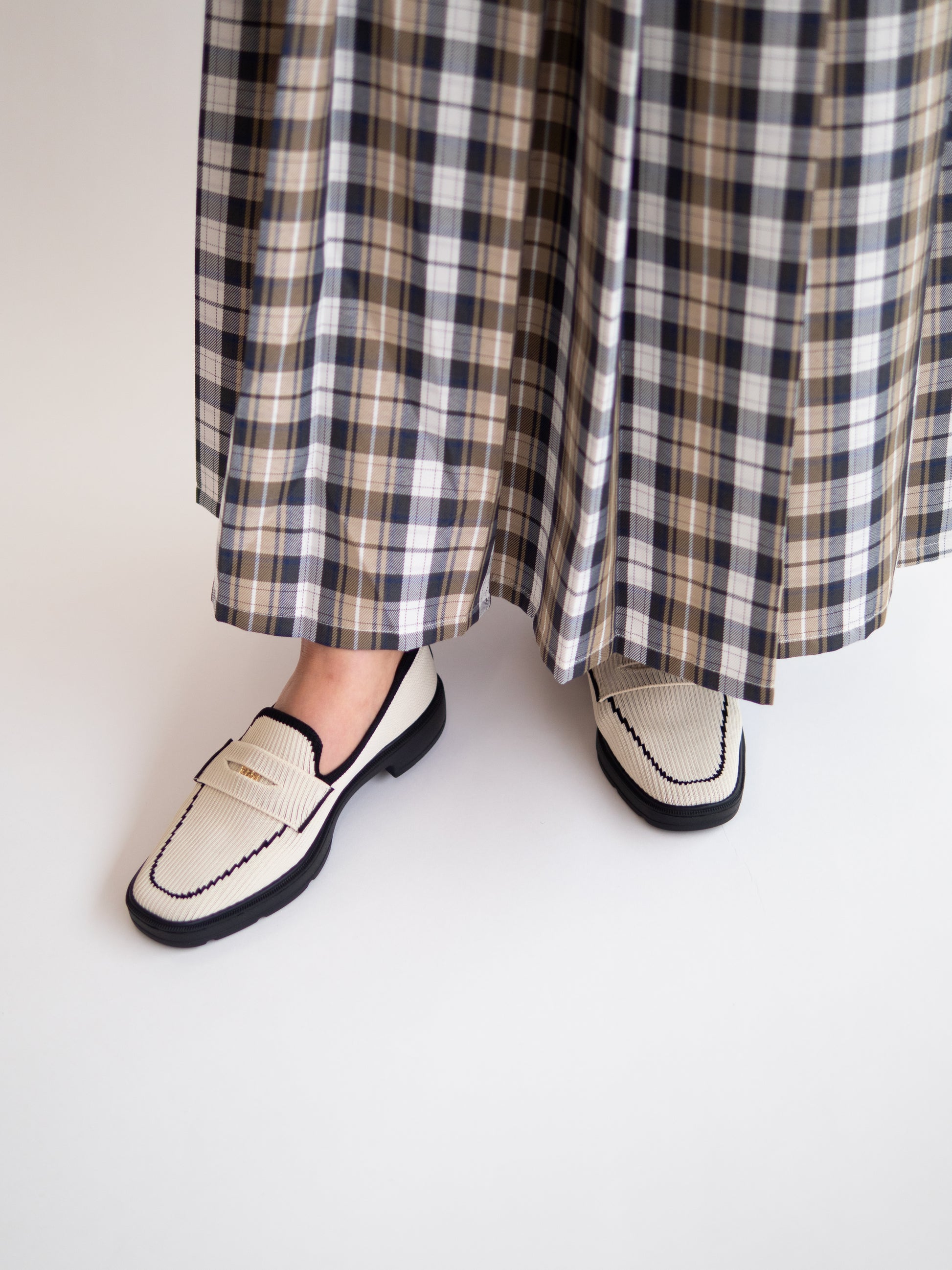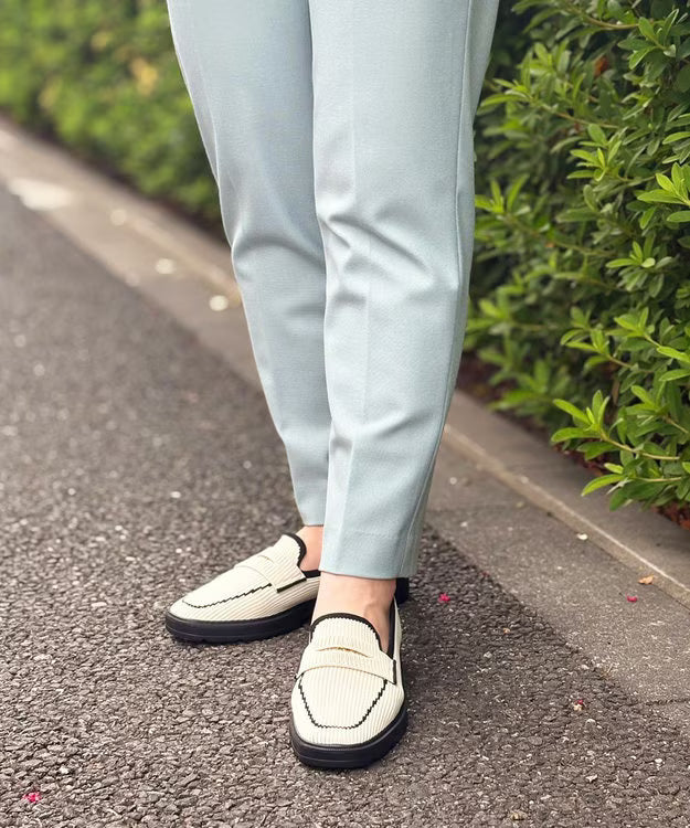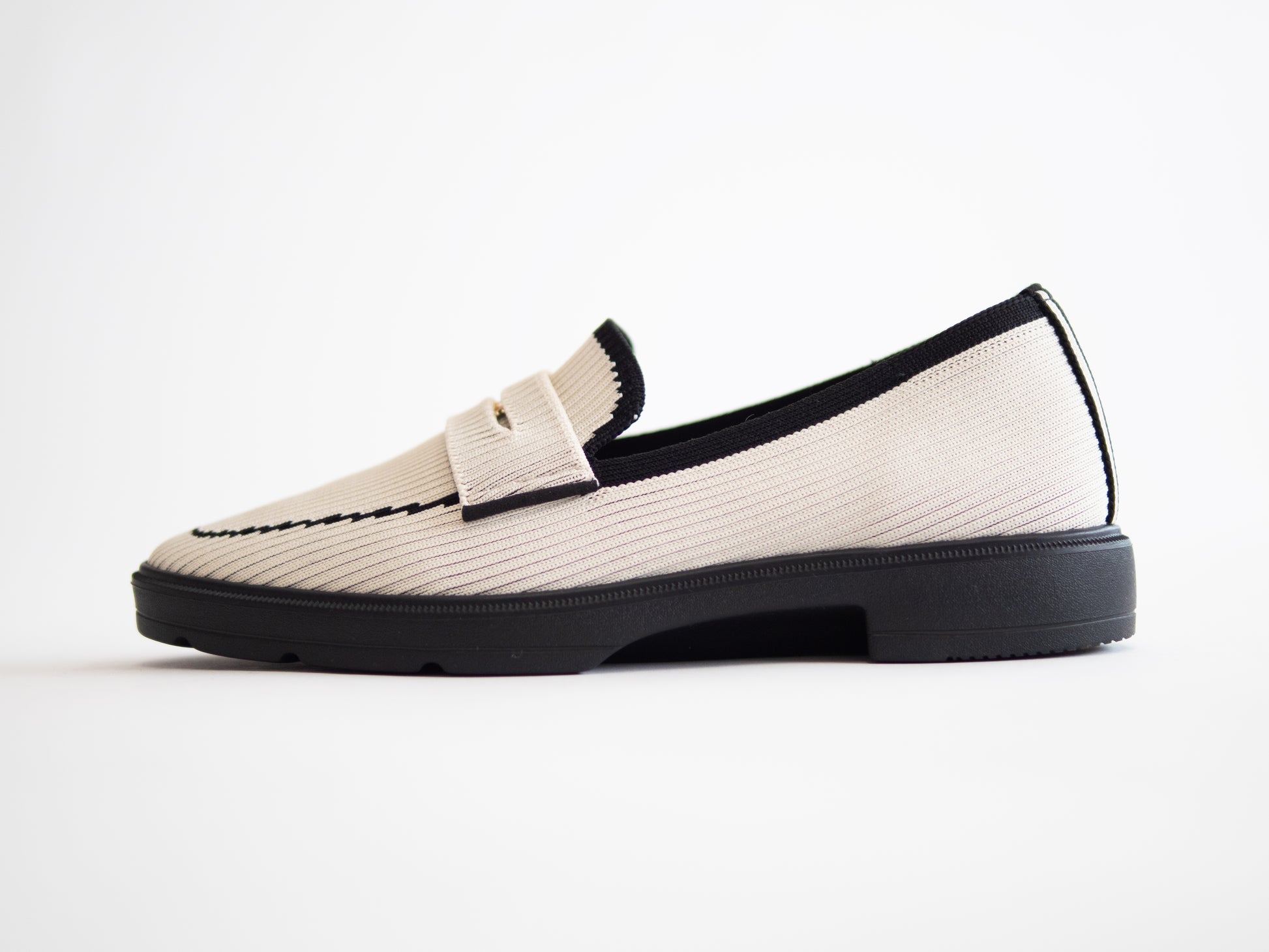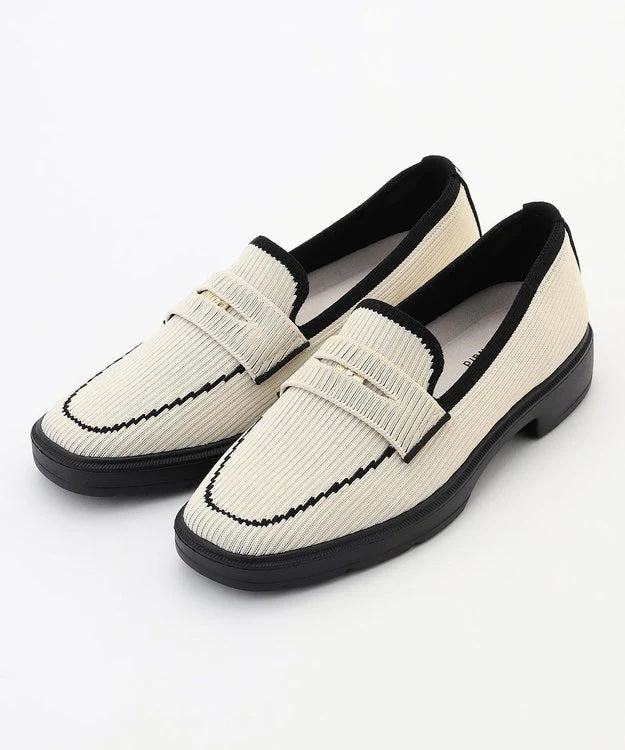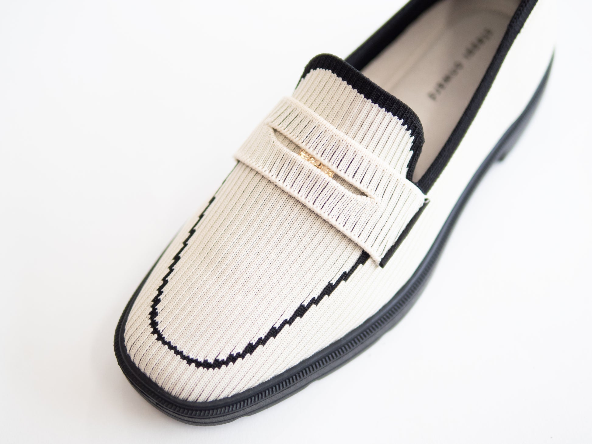 スタイリングにアクセントを添えるオリジナルのコインディテールでトレンド感があり、細身のリブ編みで洗練された印象のニットローファーです。