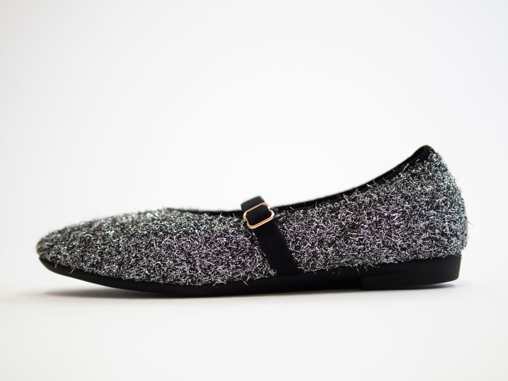 〈予約商品〉ラウンドファー パンプス【ブラックラメ】