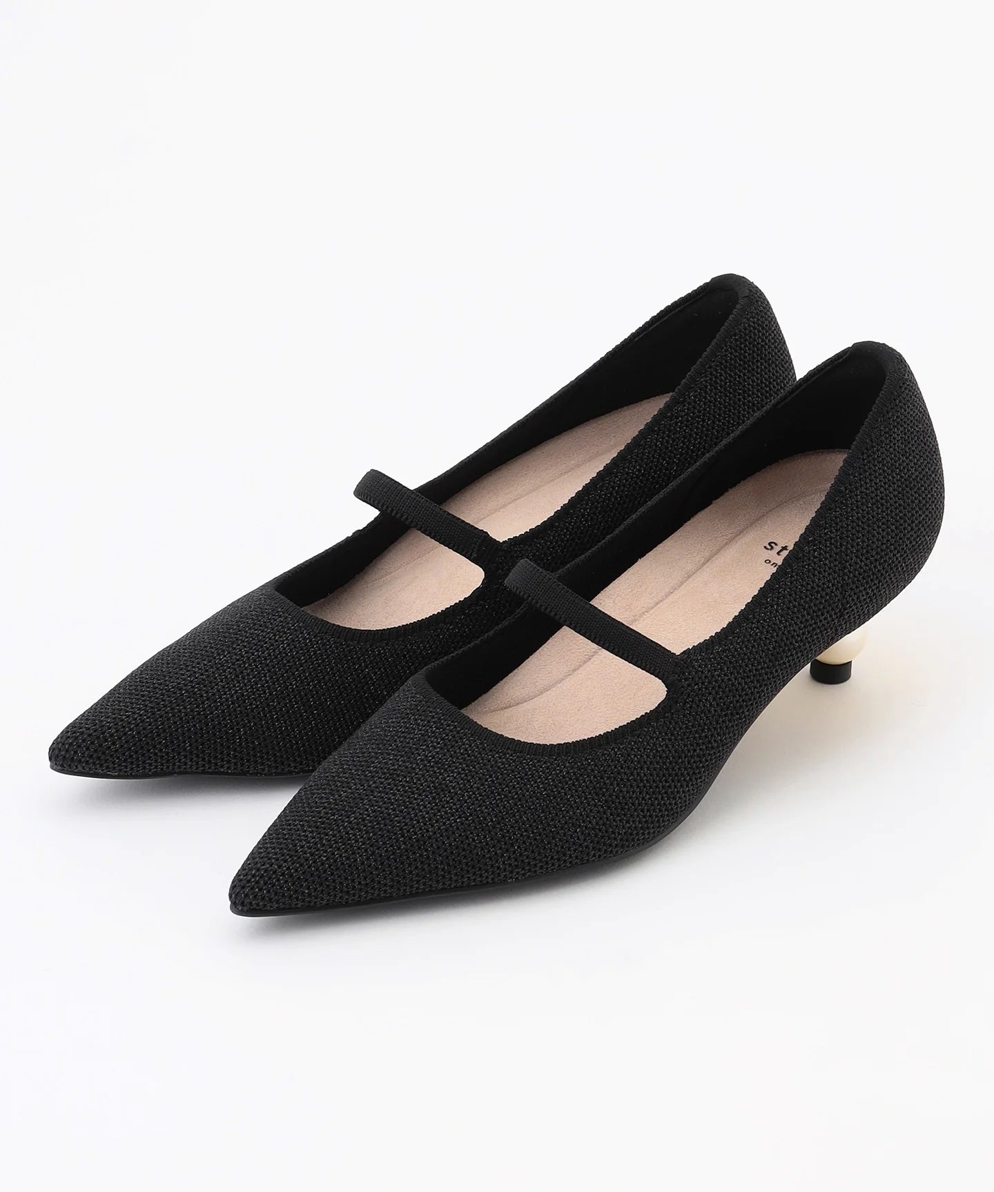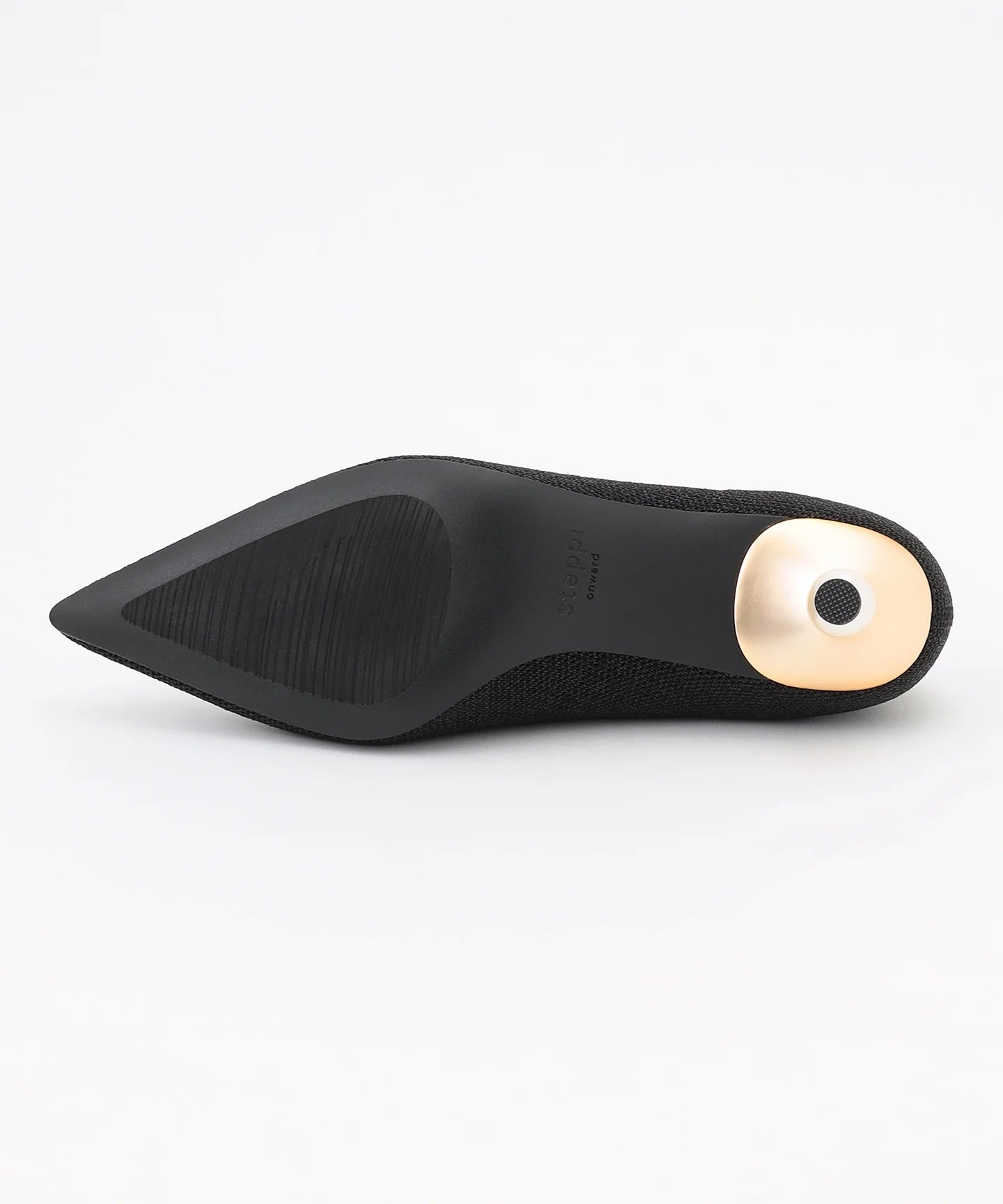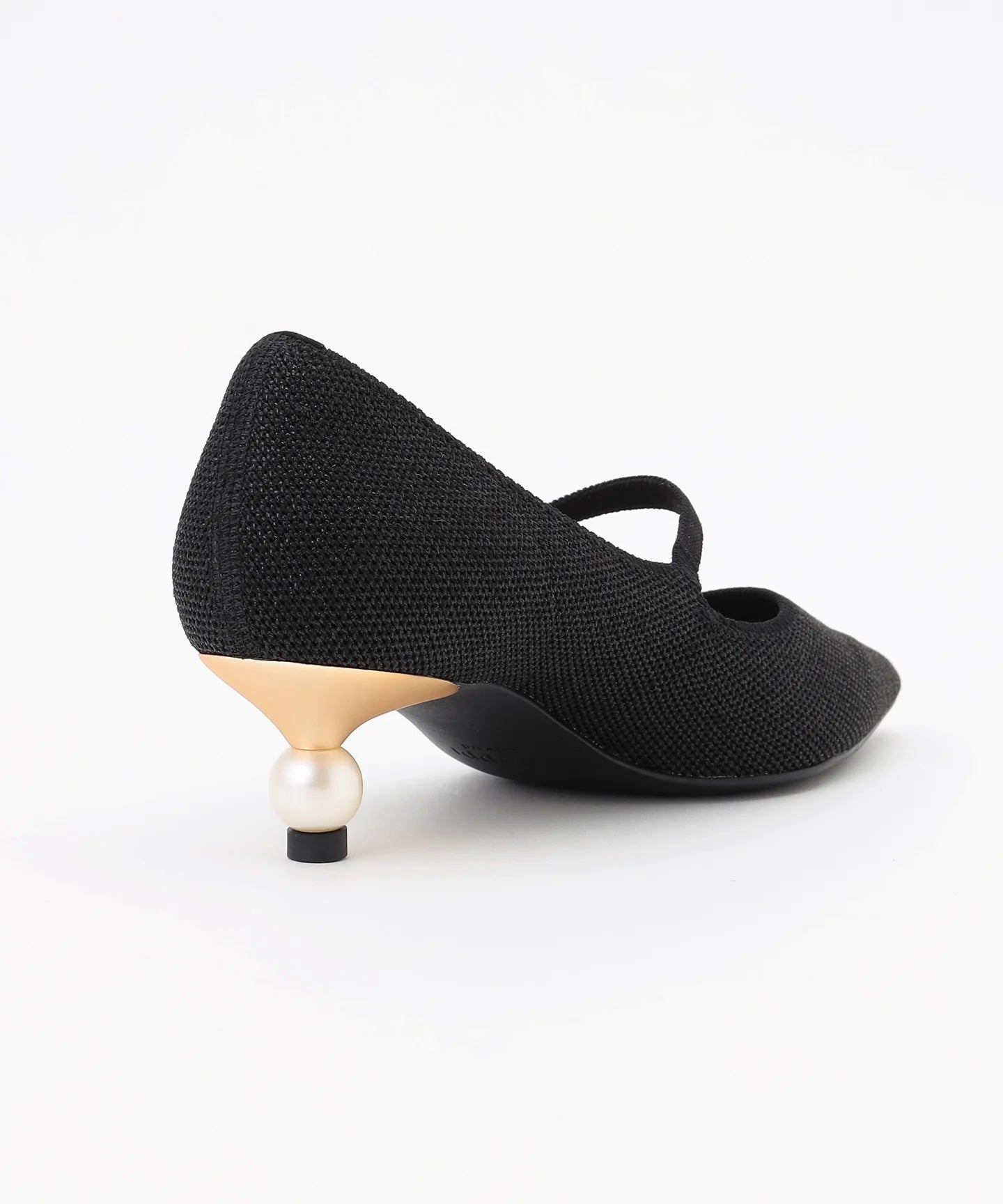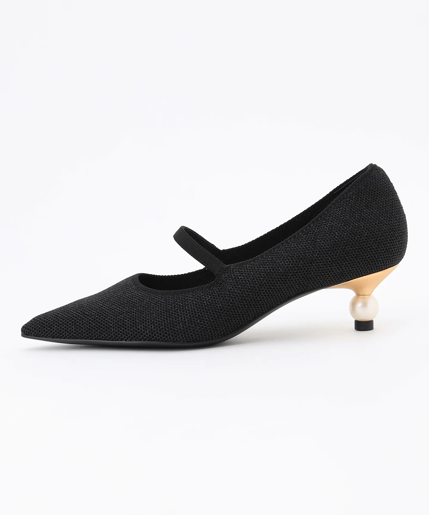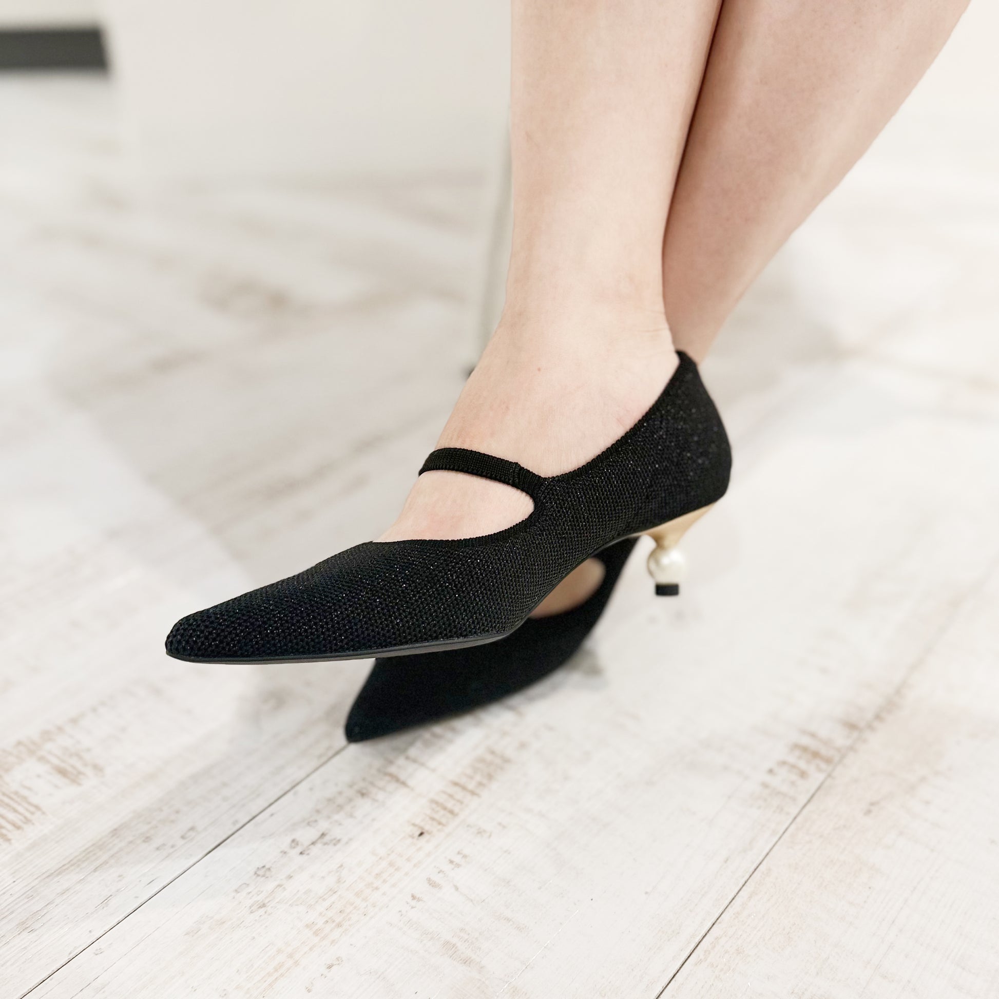 印象的なパール付きの約4cmメタルヒールと、黒ラメ糸を引きそろえたアッパーが華やかで、オケージョンシーンにもぴったりなデザイン。