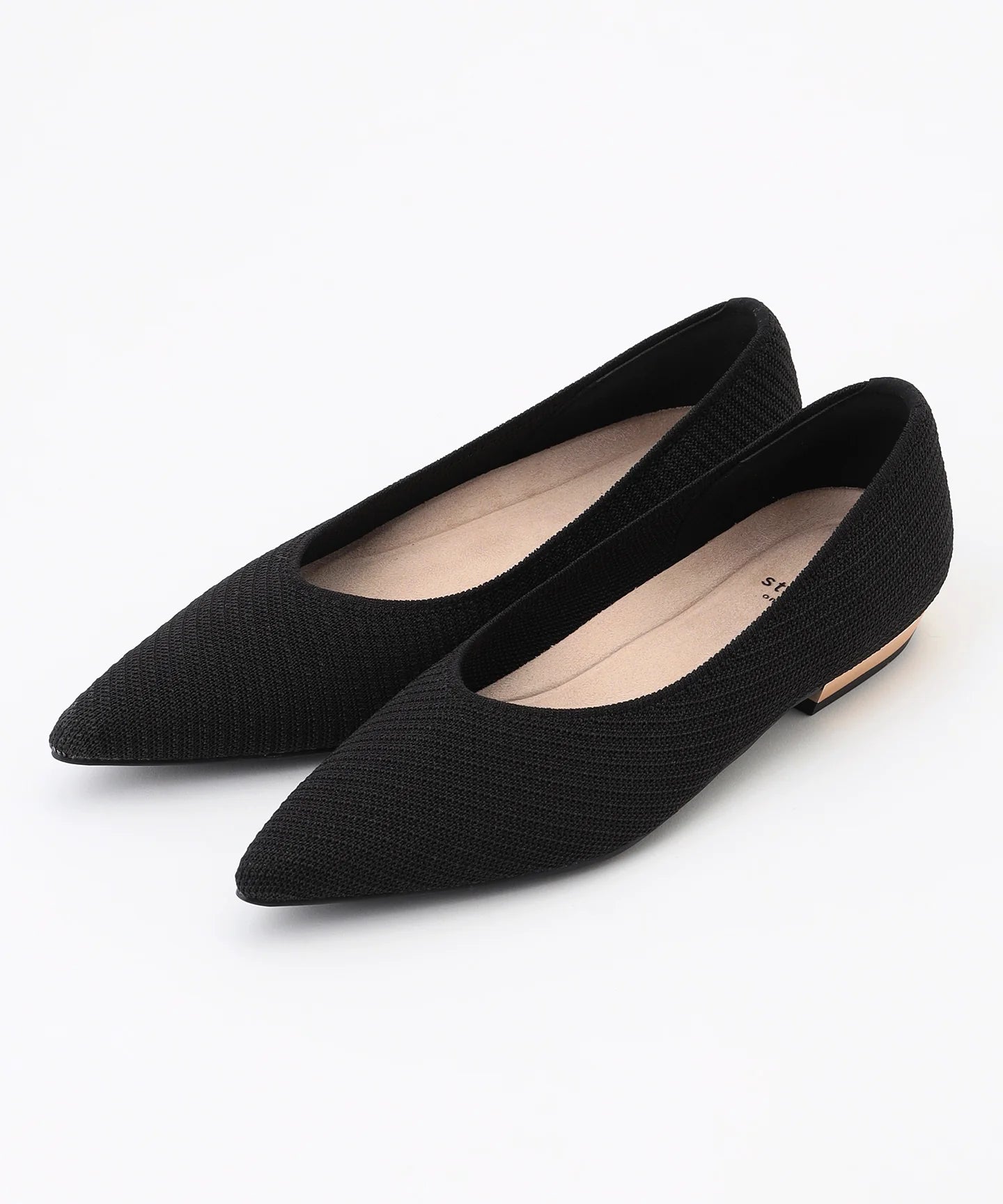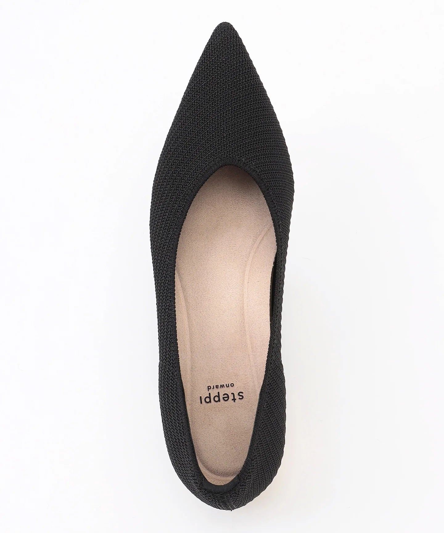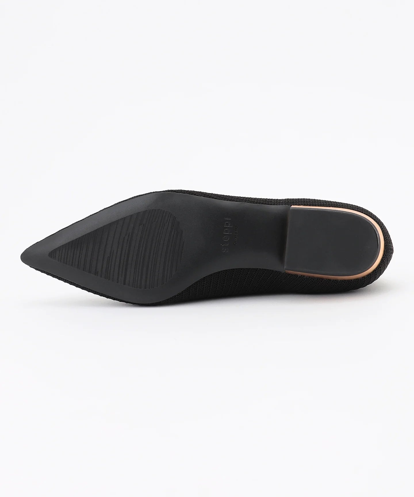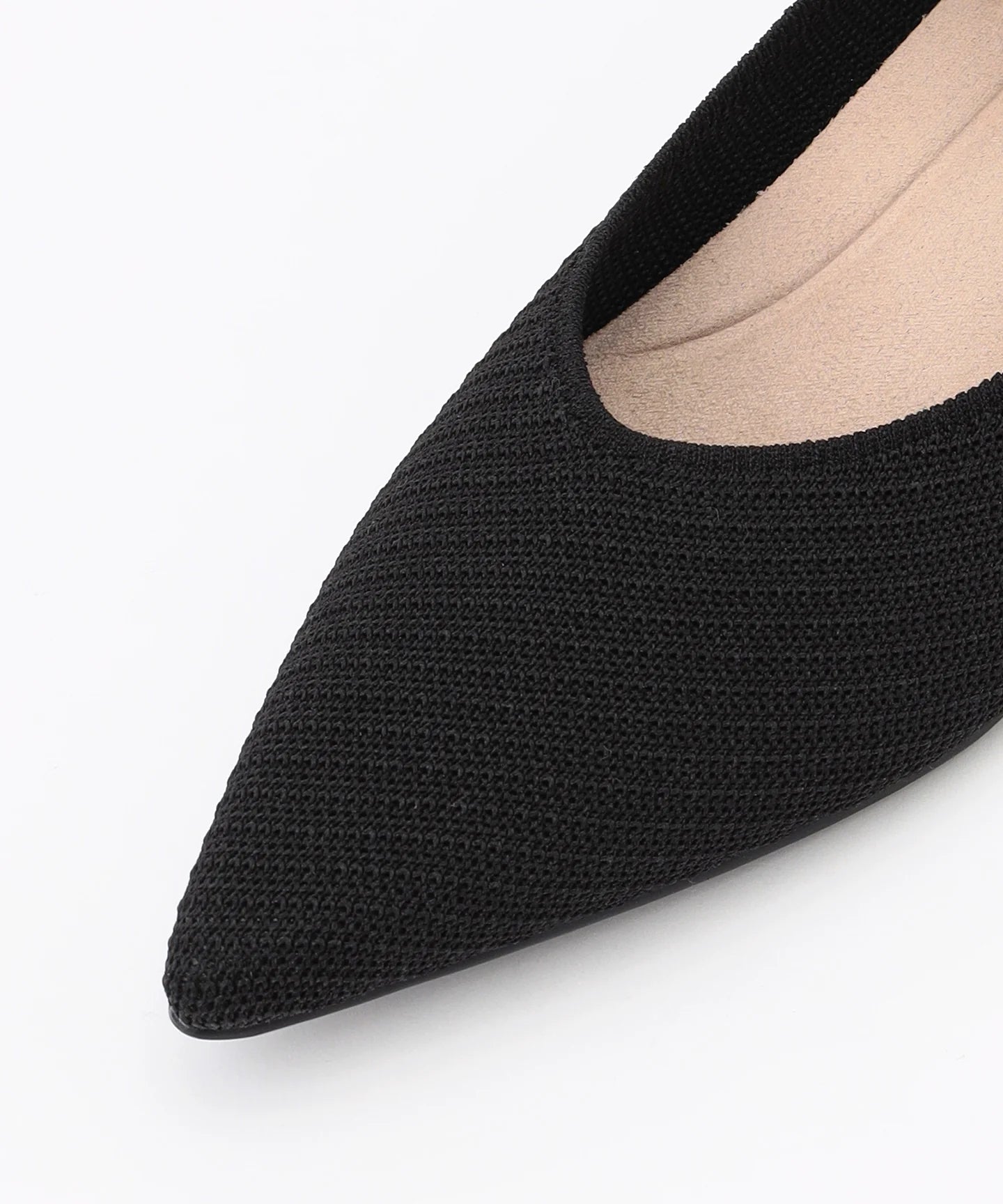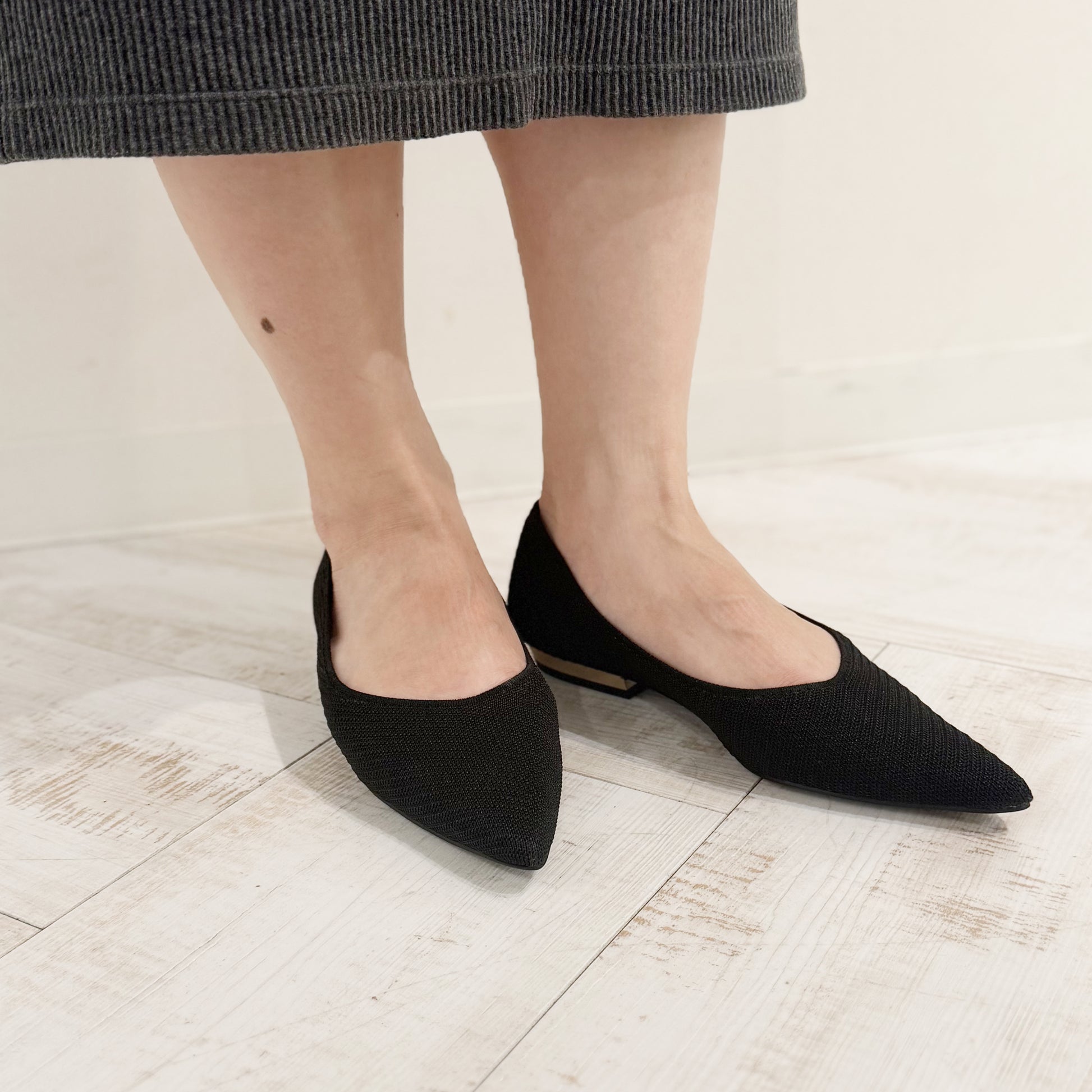 緊張度が高めの細いポインテッドトゥですが、ニットアッパーで履き口が柔らかく伸縮して痛くなりにくい◎